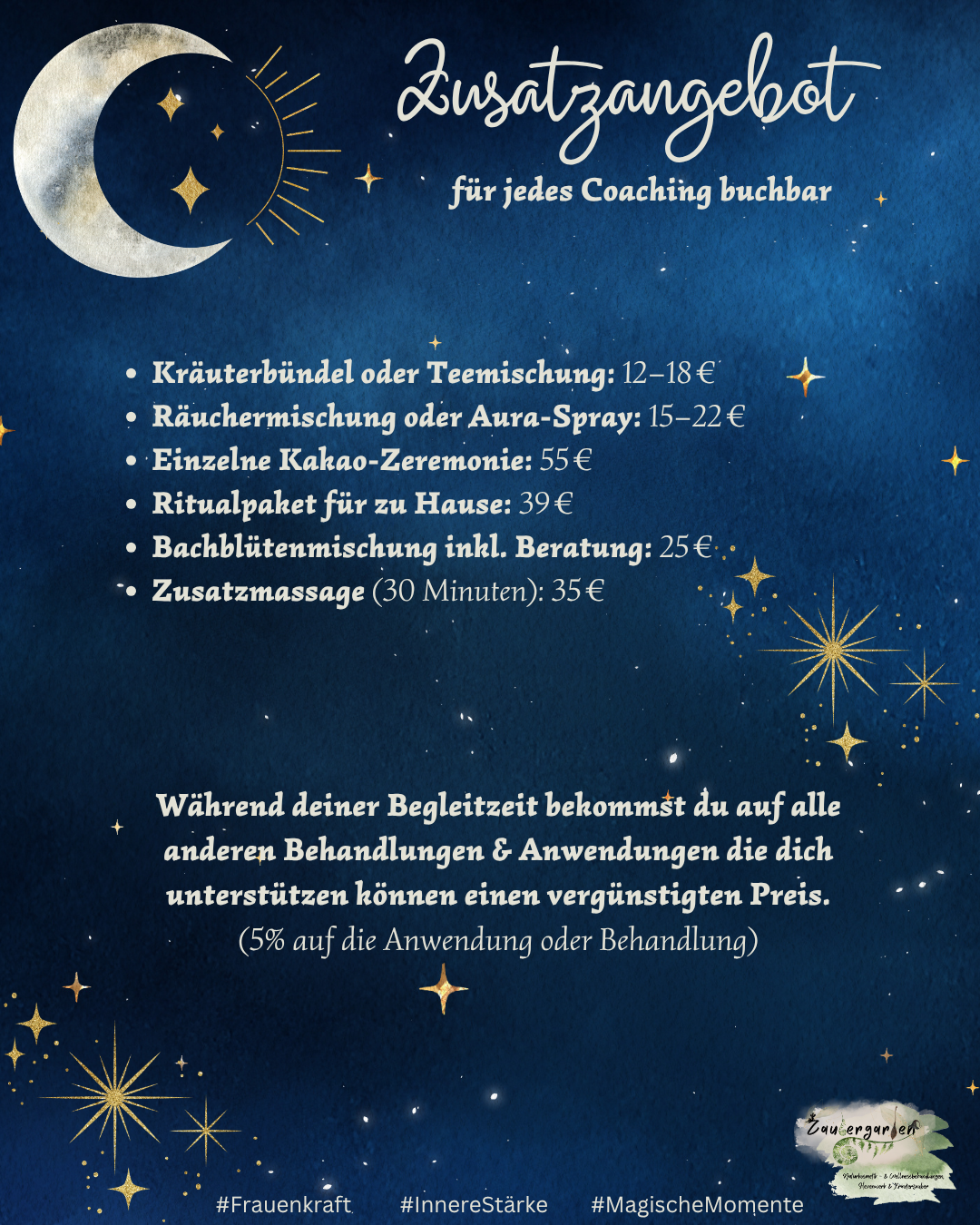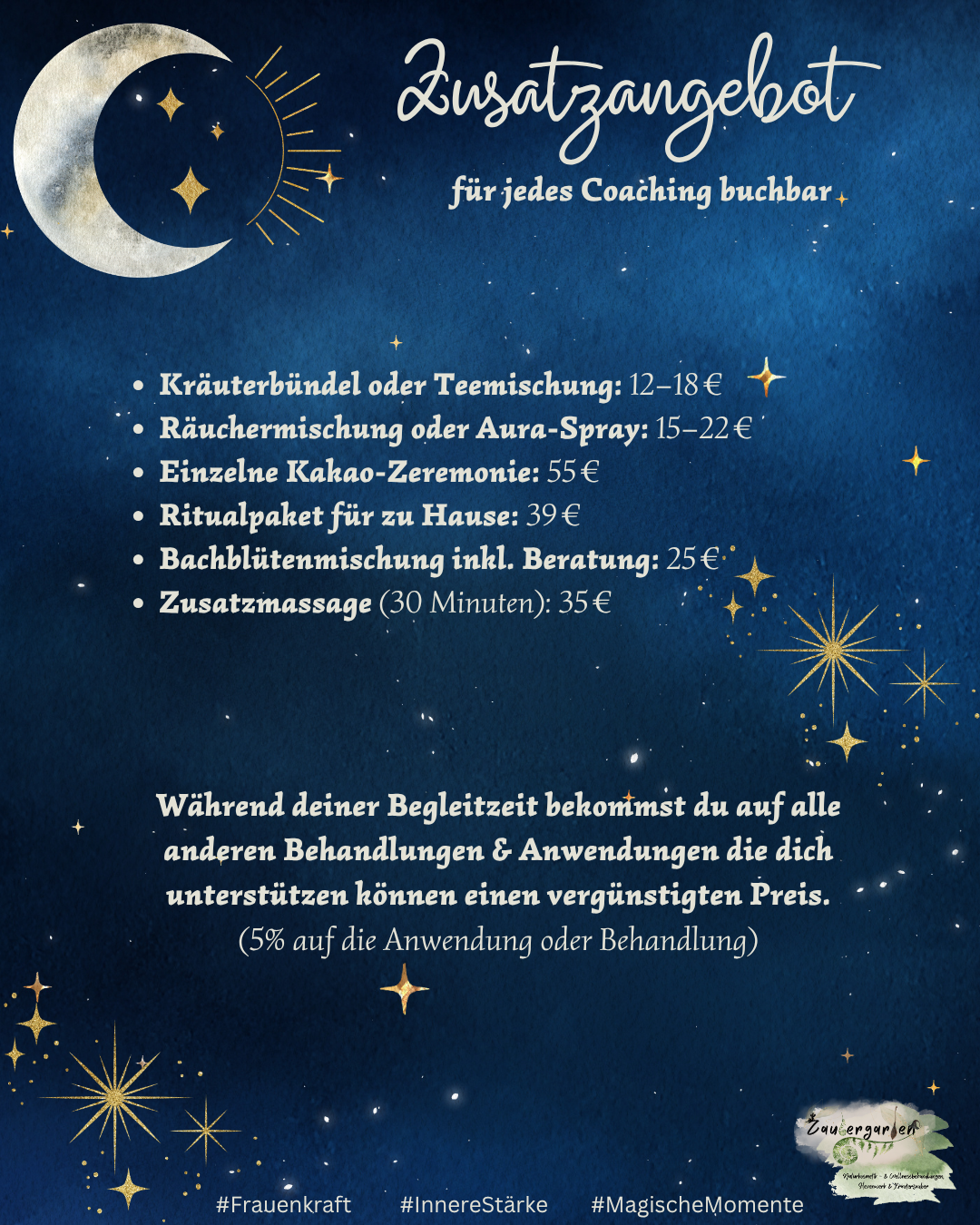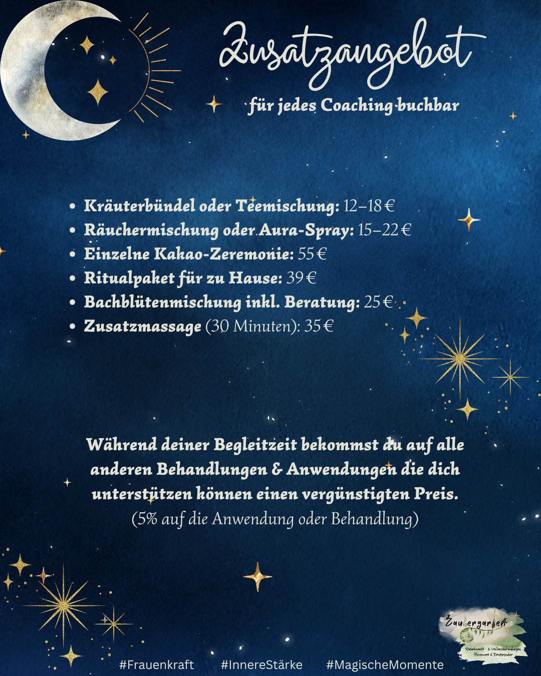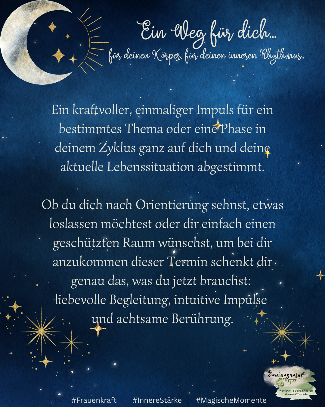 Der Zaubergarten bietet Frauen eine ganzheitliche, energetische Begleitung in verschiedenen Lebensphasen. Ob es sich um körperliche, seelische oder spirituelle Herausforderungen handelt, gemeinsam finden wir individuelle Wege, um innere Balance und Wohlbefinden zu stärken.